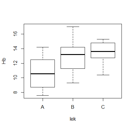 Stąd wniosek, że poziom hemoglobiny u pacjentów stosujących różne leki różni się istotnie.