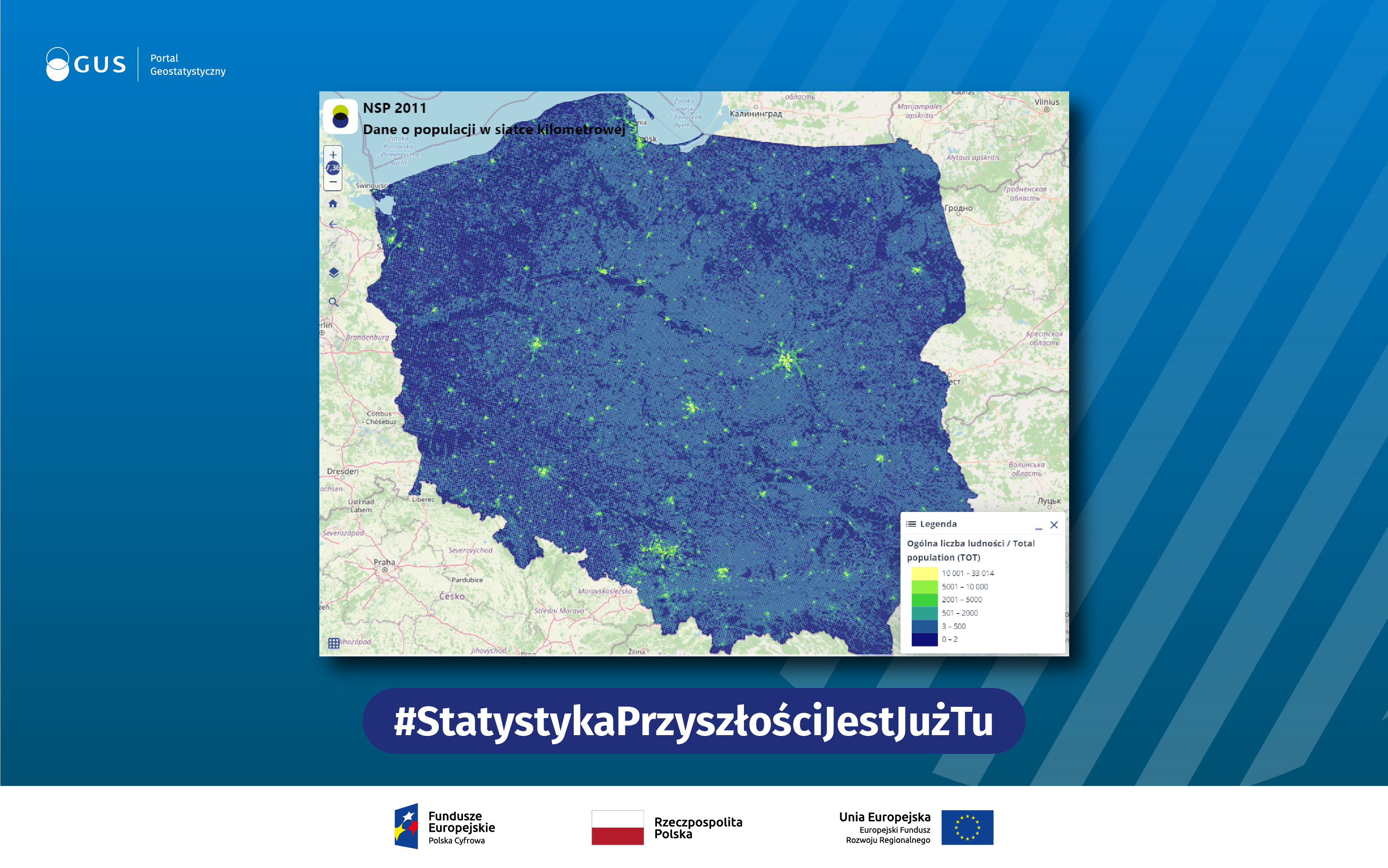 W spisach ludności i mieszkań w 2011 i 2021 roku dane statystyczne gromadzone były z odniesieniem do punktu. Dzięki temu po spisie 2011 GUS przygotował i udostępnił dane demograficzne na siatkach kilometrowych. Statystyka publiczna od lat bierze udział w rozmaitych projektach i inicjatywach związanych z łączeniem danych statystycznych z informacją geoprzestrzenną na poziomie europejskim. Wpisując się w europejskie wytyczne i trendy w zakresie publikacji statystyk na mapach, wykorzystano układ współrzędnych ETRS89-LAEA – dedykowany dla siatek kilometrowych – do publikacji na nich polskich danych. Dzięki temu dane można łączyć i porównywać z danymi europejskimi.